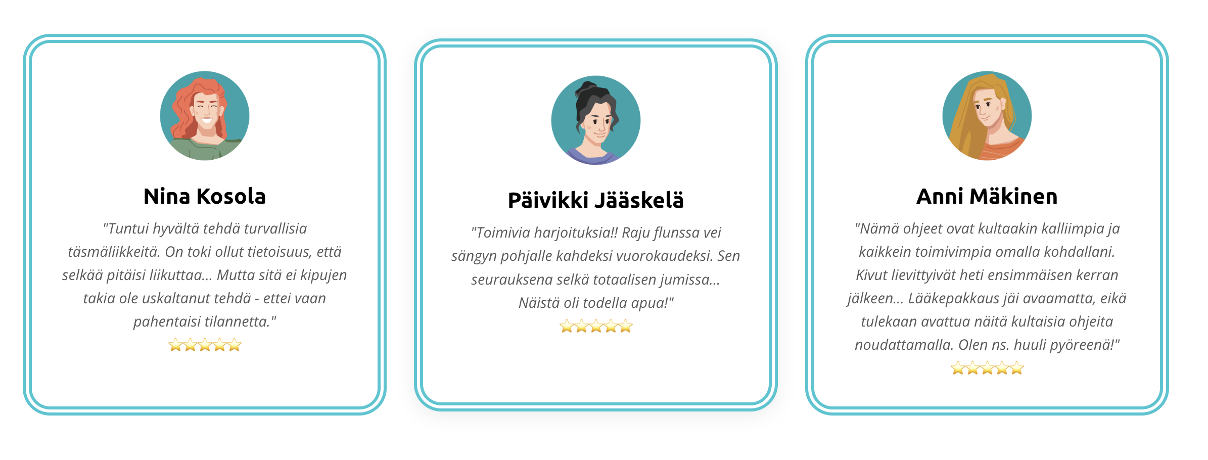 ”Nämä ohjeet ovat kultaakin kalliimpia ja kaikkein toimivimpia omalla kohdallani. Kivut lievittyivät heti ensimmäisen kerran jälkeen… Lääkepakkaus jäi avaamatta, eikä tulekaan avattua näitä kultaisia ohjeita noudattamalla. Olen ns. huuli pyöreenä!”