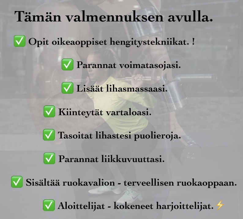 ✅ Kehitä voimaa, kasvata lihasmassaa ja paranna kestävyyttäsi ammattimaisen valmennuskokonaisuuden avulla. Paketti sisältää nousujohteiset koti- ja kuntosaliohjelmat, selkeät viikkorytmit sekä tuloksia tukevan ruokavalion. Tämä kokonaisuus sopii täydellisesti niin aloittelijoille kuin kokeneillekin treenaajille, jotka haluavat saavuttaa näkyviä muutoksia turvallisesti ja tehokkaasti.