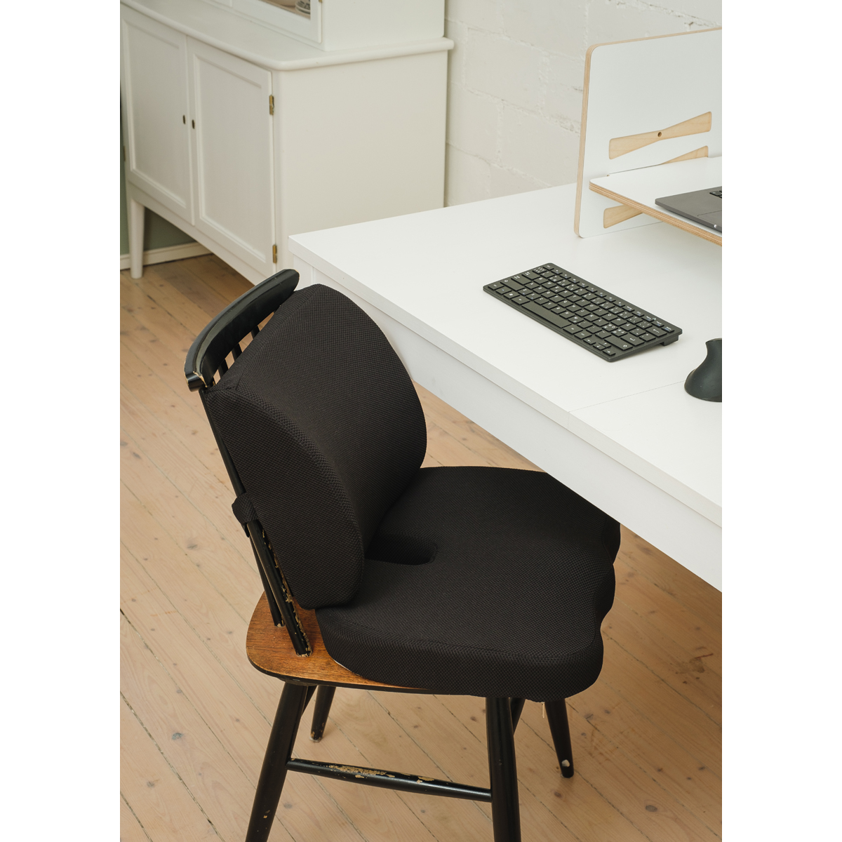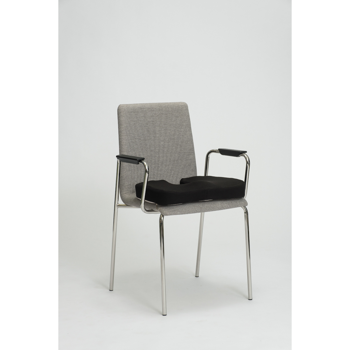 Mukavoittaa istumatyötä ja keventää istumisen kuormitusta. Ergonominen muotoilu. Häntäluuaukko minimoi häntäluun ja istuinpinnan välisen kontaktin ja näin vähentää painetta häntäluussa sekä lieventää iskiasoireita. Liukumaton pohja, jotta tyyny pysyy paikallaan. Sopii lähes kaikenlaisiin tuoleihin. Kantokahva helppoa liikuttelua varten.